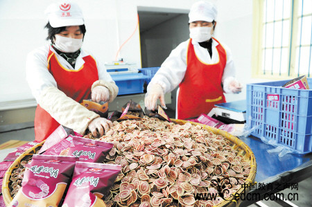 “两条红薯精深加工生产线已正式投产,纯天然红薯糕点系列休闲食品已上市。”彭焕新告诉记者,他的红薯系列休闲食品上了航班,并在长沙各大超市露脸。