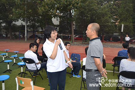 图为王毓婉同学接受采访 蒋雨暄的爸爸接受学生采访
