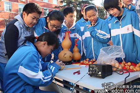 11月14日,学校邀请到十位民间艺术家走进校园,为学生开展了丰富多彩的民间艺术传承活动。在“欣赏”环节,学生近距离接触到民间工艺大师及精美的民间艺术作品,同学们对民间艺术产生了极大的兴趣和新的认识; 同时也有学生在动手实践中亲自体验。蛋雕、绒花、面塑、泥塑、脸谱等传统艺术学生们在老师的指导下,自己创造,感受着中华文化的博大精深,活动深深的吸引着学生。