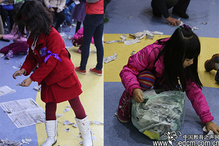 (撕完报纸收垃圾,我们都是爱环保的小卫士!)