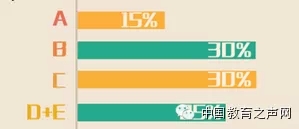 教育部有关负责人说,计入高校招生录取总成绩的学业水平考试3个科目成绩以等级呈现,一般分为5个等级,位次由高到低为A、B、C、D、E。原则上各省份各等级人数所占比例依次为:A等级15%,B等级30%,C等级30%,D、E等级共25%。E等级为不合格,具体比例由各省份根据基本教学质量要求和命题情况等确定。不计入高校招生录取总成绩的其他科目一般以“合格、不合格”呈现。