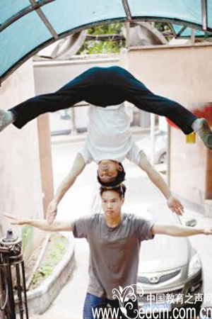 “这并非我们独创,练习是为了打破师姐创造的纪录。”这种我们看起来逆天的表演,是两个小伙每天的必修课。