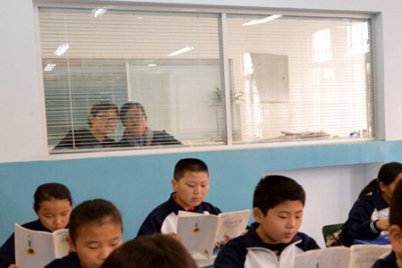 这个周末,河北邯郸市一所中学火了,其实行的“教师全程随班办公”模式,打破传统的师生学习和办公的空间藩篱。该校通过“一拖二”的办公室与教室的特殊改造,在学校每个教室后部设置班主任办公室,班主任通过玻璃窗能够随时观察学生在课堂上的表现。