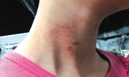 女儿放学回家时脖子有淤痕