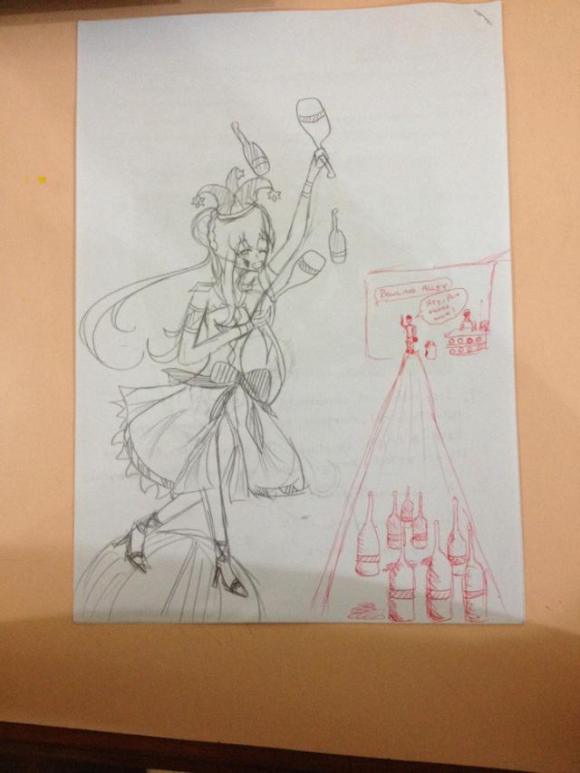 约翰老师的涂鸦不是在学生的原有“作品”上稍作改动,他往往会完全改变原作的情境和主题,使画出的新作自成一体,常令人忍俊不禁。比如,一名学生画了个手拎长刀、英姿飒爽的长发少女,约翰老师却将其改成女孩参加生日派对,用长刀切蛋糕。还有男孩变海盗、小熊邮递员以及喵星人打渔等等,充分展示了这位老师天马行空的想象力。