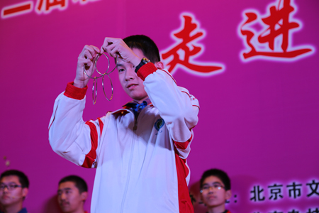 第二届北京大学生魔术交流大会启动仪式演出获得圆满成功,此次高水准的魔术交流大会为云岗中学的同学们搭建了一个良好的魔术交流平台,使现代民族魔术以其自身悠久而独特的艺术魅力感染更多的人,让中国传统文化精髓得到更有力的弘扬。