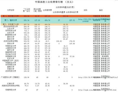赵瑞颀根据相关高校回复整理出的高校三公支出表