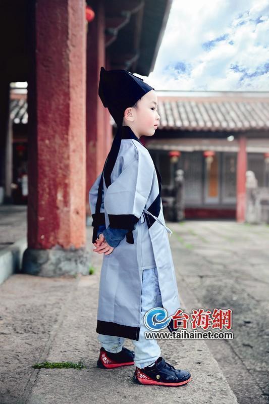 李艺爽说,上周末,正好一帮摄影达人到上杭县采风,便把可爱的小宸宸一块带上,到了上杭县文庙,正好有套小宸宸尺寸的学服,便将其打扮成“小书童”,没想到这一下红了。