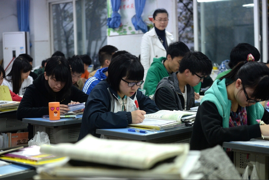 (阅读晨光 7∶10,渝北区松树桥中学,高三的学生在上早自习)