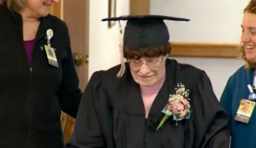 2014年6月17日,美国弗吉尼亚州诺福克县高龄111岁的老太莱拉-巴布-伯登(Lela Babb Burden)在辍学90多年后,获颁荣誉高中毕业证书。