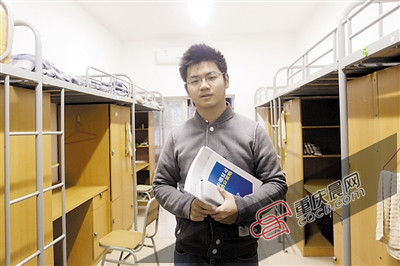 前一天回宿舍没有背书包,杨可凡的手里抱着几本辅导材料,有英语、语文还有物理。这是杨可凡根据自己的情况拟定的复习内容,头天晚上如果没有看完,他会利用第二天早上的时间完成。