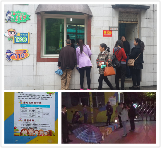 上午10:20分许报名排队的家长已经散去了,负责登记的工作人员和维持秩序的民警总算松了一口气。据了解,早上7点,100多名适龄儿童家长就带着小板凳、雨伞、厚衣服,在雨中排队了。记者在幼儿园大门看到:年满三周岁、户口在东坡区城区的幼儿属于符合条件的幼儿;年满三周岁、户口不在东坡区城区或不满三周岁、户口在东坡区城区的幼儿则属于不符合条件的幼儿只能进行登记。