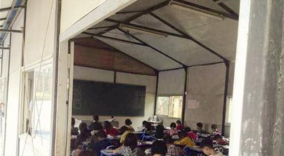 不过,吴校长也承认,这种做法效果不是很好,“如果在每间教室里安装空调也不太现实,因为铁皮屋的密封性本来就不好,即便是装了空调,也只能是摆设”。吴校长说,他前几天又去找村主任商量给教室降温的事,村部已经答应,过几天就在每排铁皮屋上搭建防晒网。