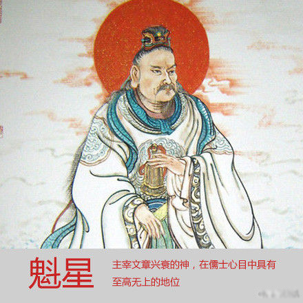魁星是汉族神话中所说的主宰文章兴衰的神。旧时很多地方都有魁星楼、魁星阁等建筑物。魁星信仰盛于宋代,从此经久不衰,成为封建社读书人于文昌帝君之外崇信最甚的神。传说他那支笔专门用来点取科举士子的名字,一旦点中,文运、官运就会与之俱来,所以科举时代的读书人将其视若神明。唐宋时,皇宫正殿的台阶正中石板上,雕有龙和鳌(大 龟)的图像。如果考中进士,就要进入皇宫,站在正殿下恭迎皇榜。按规定,考中头一名进士的(状元)才有资格站在鳌头之上,故有“魁星点斗,独占鳌头”之誉。