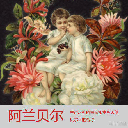 “阿兰贝尔”是 “ 幸运之神与幸福天使”之意,在古希腊神话中是“幸运之神”阿兰朵和"幸福天使"贝尔蒂的合称。在希腊的神话中,阿兰朵和贝尔蒂是亚特兰斯帝国沉没后幸存下来的小王子和小公主,坚强勇敢的阿兰朵小王子受到智慧女神雅典娜的垂青,具有非凡的法力;美丽善良的贝尔蒂小公主则受到太阳神阿波罗和黑暗之神的暗中保护,具有通晓世间百事的能力。两人不忍心看到光明家族和黑暗家族无休止的争斗使无辜百姓受到伤害,违背众神的意志,一起为人类送来太平和幸福,阿兰朵成为后来希腊人们传说中的“幸运之神”,而贝尔蒂被称为"幸福天使"。