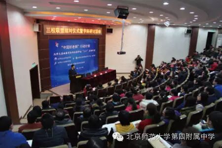 在为期两天的实践中,教师们分享了学校同伴们的培训心得,了解我校教师代表外出学习的感受; 聆听了我校校监吴年翔先生关于《好学校、好老师贵在行动》的讲座,结合我校的实际情况反思教学,思考如何创建高效课堂,培训还以北师大为核心,举行了“牵于结队、互通互助”三校联盟结对仪式暨学科研讨活动,邀请北师大专家、其他附中的校长、骨干教师与我校教师进行经验交流。