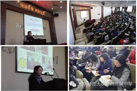 通过两天的交流培训,老师们受益匪浅。从教育理念入手,了解当今课程改革的方向,课堂教学模式变化的趋势,强调以德育人,用爱心帮助学生成长。相信北师大四附中的老师们会以北师大为平台不断地探索前行,促进学校整体发展,用爱的教育为学生的成长助航。