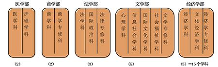 大学所设学科有医学、护理学、文学、心理学、国际文化学、地域文化学、信息社会学、社会学、社会福祉学、经济学、文化经济学、金融工学、法学、国际政治学、商学、教育学等学科。构建21世纪经济社会发展和人才培养需要的学科体系,是一所学科门类覆盖比较全面的大学。大学拥有一支阵容整齐、结构合理、学术精湛、锐意创新的师资队伍。现有教职员工1000多人,全日制在校学生7000多人。其中留学生近300多人,来自中国的留学生居首位。