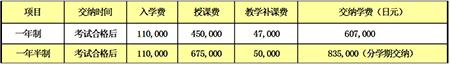 1.留学生别科学费 (学费分为每半年交纳1次)