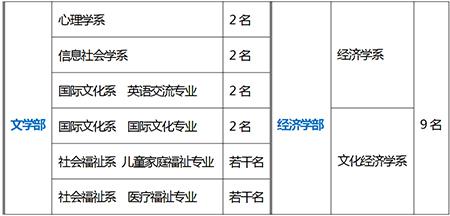 *文学部、经济学部(每年10月在中国招生,4月入学)