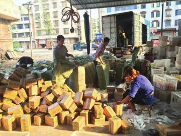 龙台镇 319 国道旁,10余平方的门店里,3名女孩正在不停地敲击键盘,这便是一家年销售额过千万网店的所在地。门口10余名工人正将金黄的柠檬打包,准备寄往上海、天津、宁波、徐州、哈尔滨、银川等地。