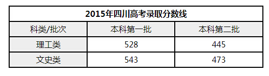 四川省2015年高考录取分数线公布