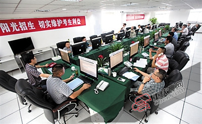 重庆晨报讯 记者 张旭 2015年重庆高考招生录取仍在进行中,录取过程中如何确保公平公正?如何保证考生的信息安全?昨天上午,10多位考生和家长代表,走进全封闭的高考录取现场,打探高考录取“实况”。