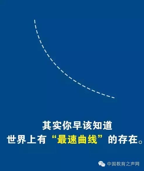 原来顺势而行,借力发挥,才能让自己更快向前!看到了吗?从“最速曲线”上的不同位置出发,总能在同一时刻到达!生活就是这样,不是看起来离目标远,就真的会慢了很多,只要选对了路,一切为时未晚。