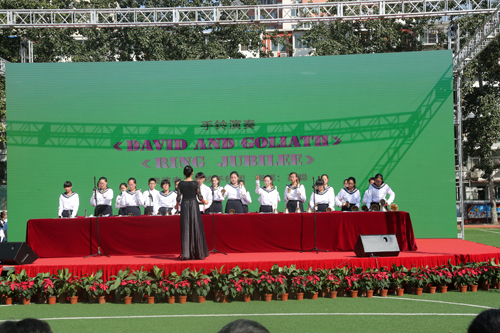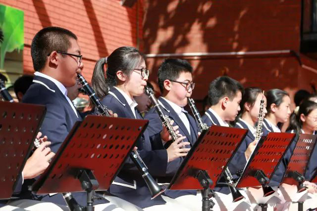 校庆活动中,学校师生们均展示了自己的才艺。节目以唤起不同年代的校友对求学岁月的美好回忆,重温同窗情、校友情,在同学之间形成互动与共鸣。教师代表们带来了精彩的功夫扇表演;学生张博凡演唱了原创歌曲《最美时光》;学校手铃团的同学们演奏了两首外国名曲;管乐团的同学们演奏了《幸福的格物》,同学们丰富而精彩的演出展示了学校素质教育的丰硕成果。