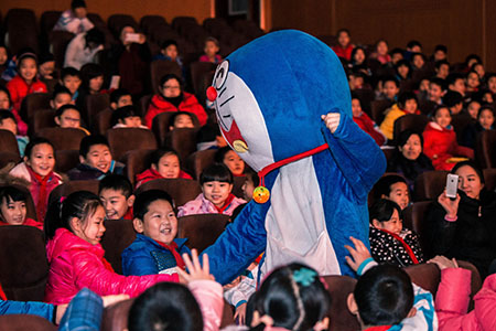新年音乐会历时一个小时。当同学们熟悉的日本动画片《哆啦A梦》的主题曲《小叮当》的旋律响起时,台下的同学和着节奏拍起了手,台上台下一起呼应,把整场音乐会推向了高潮。
