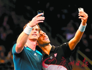 两名运动员正在玩自拍