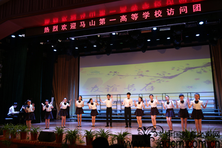文艺演出中,中韩两国学生配合的相当默契。北京市第十八中学的学生一开场就用热情的舞蹈和优美的歌声感染了韩国师生。韩国马山第一高等学校的师生惊讶于中国独具特色的京剧魅力,十八中的师生也同样领略了韩国版的滑稽骑马舞。北京市第十八中学西马校区学生带来的藏族舞蹈把文艺演出推向了高潮。音乐厅内掌声、欢呼声连绵不绝,印证了两校师生浓浓的友情。在2015年羊年来临之际,愿两校彼此共同成长,友谊长存!