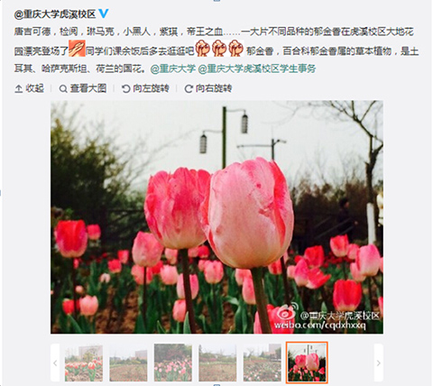重庆大学虎溪校区,最近引进了郁金香。郁金香是土耳其、哈萨克斯坦、荷兰的国花。彭麻麻在去年访问荷兰的时候,曾为最新培育的郁金香命名为“国泰”,并按当地传统浇上香槟。“国泰”名字美,花颜也美,不信看图↓