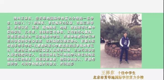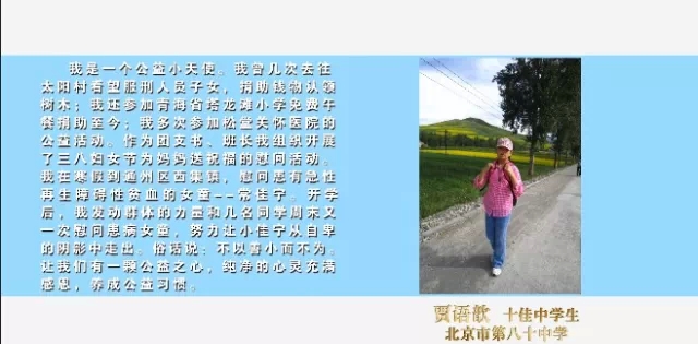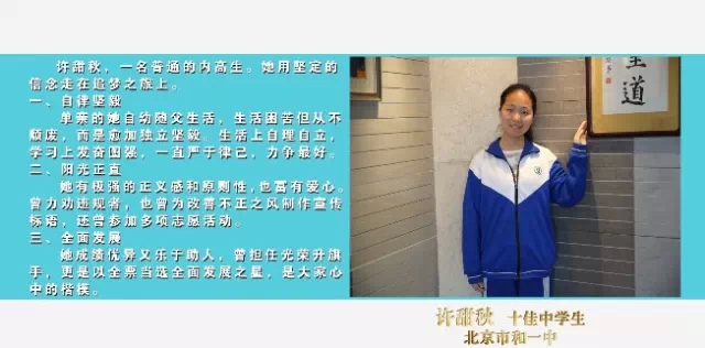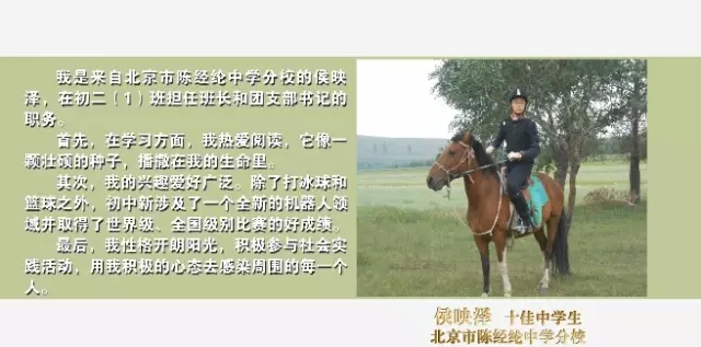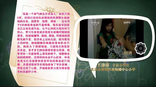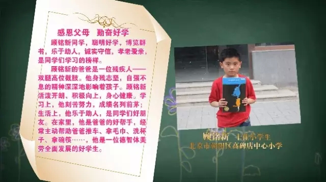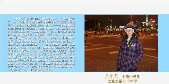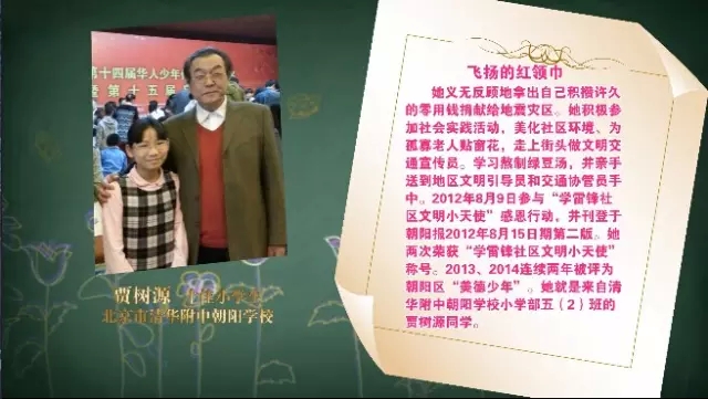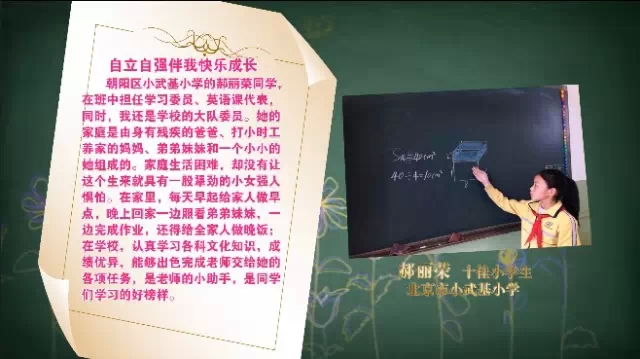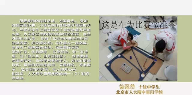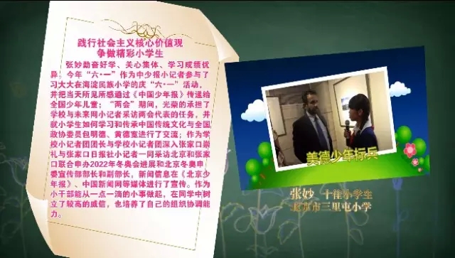 会上,朝阳区六名中小学生先后介绍了他们的成长经历和学习体会。从同学们的展示中不难看出“十佳中小学生”的共同特点,首先他们热爱祖国、积极践行社会主义核心价值观;同时他们也勤思好学,学以致用,在学习与实践方面取得了突出成绩;除此之外,他们有强烈的社会责任感,注重道德修养,不断完善人格,诚实守信,助人为乐,用实际行动托起心中的“中国梦”。
