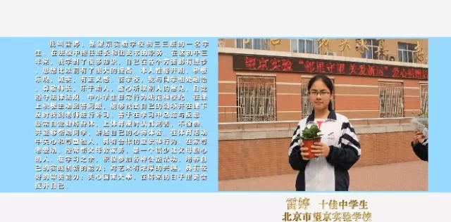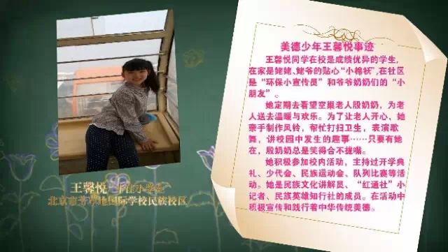 在此次评选活动中,基层学校共推荐了道德之星241人(中学98人,小学143人),文明礼仪标兵7191名,美德少年16719名。朝阳区教委在学校上报的基础上,组织相关专家进行评审,最后评选出“十佳中小学生”各10名,提名奖各15名,道德之星191人。学校推荐的文明礼仪标兵7191名,美德少年16719名。