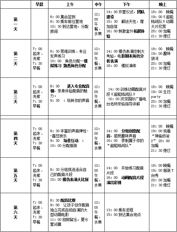 l 每人至少参与两部动画片段配音,夏令营结束后赠送精美视频及活动照片,留住时光。
