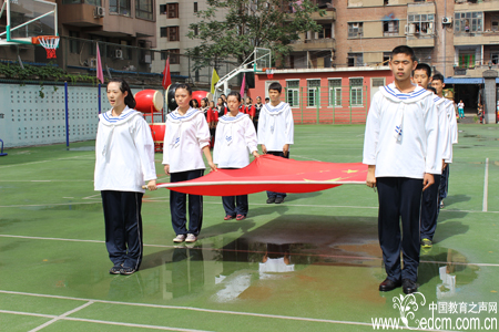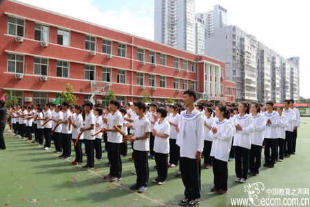 整齐的学生队伍为学校的华丽蜕变而喝彩