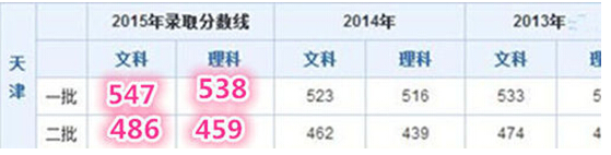 2015天津高考本科一批、本科二批录取控制分数线