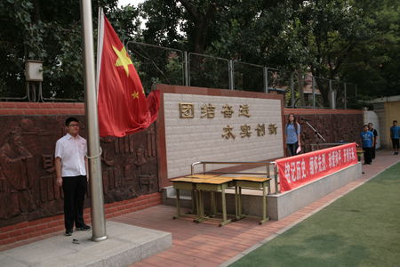 前事不忘后事之师,七十八年前的7月7日,战火染红了卢沟桥,宛平与北平不平,华北与中国告急。八年抗战,记录日本侵略者的野蛮与杀戮,也见证中华民族的抗争与不屈。现代的青年不应该也不能够忘记这段历史。此次,我校的纪念活动分四个校区分别进行,共500余名师生参加,由校团委统一部署,每个校区的活动除了重温入团誓词和集体宣誓环节外,都各有特色:东校区,全体团员向在抗日战争及反法西斯战争中牺牲的烈士默哀1分钟;西校区,全体团员在印有“铭记历史、缅怀先烈、珍爱和平、开创未来”的横幅上签字;北校区的纪念活动安排在高三毕业典礼上,即将离开母校的高三学子带领高一、高二的师弟师妹们重温入团誓词;本校区,全体团员向烈士敬献鲜花。
