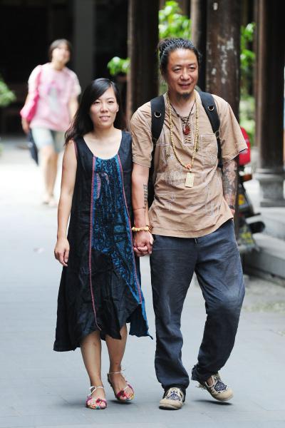 7月初,顾少强和于夫领了红本本。23日,记者见到这个身材高大的东北男人时,不禁被他多处文身所吸引。“我手臂文身多,这是我母亲名字,这是她年轻时的照片,这是她最爱的牡丹花。”而于夫的锁骨,则有为心爱人顾少强烙下的印记。“这是希伯来文,是姓氏顾,日期‘1980-10-07’是她的生日,锁骨,代表刻骨铭心,这也是她在我心中的位置。”