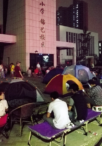 说起孩子上学的问题,很多家长喜欢用“上学难”“上学热”来形容。到底有多热?昨日下午,在中原区互助路小学锦艺校区,家长们为了自己宝贝能报上名,一个个都玩起了“露营”。