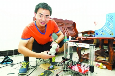 在丁齐全的工作室,有两台正在运行的3D打印机,竟是他自己组装的。他说,关键设备从网上淘,辅助设备就自己打印,总花费不过千余元,比市场上动辄几千上万的价格低多了。他打算在此基础上优化改良,开发小型迷你家庭玩具级别的打印机。