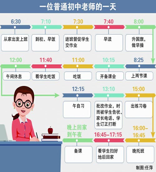每天早晨4:30起床备课,7点左右已经赶到学校。下班后,由于太累先睡一会儿,晚上十点再爬起来批改作业、回复家长的疑问、处理班级琐事,再抬头时已是深夜。更“可怕”的是,这样的生活日复一日。