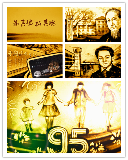 此次活动的开场别开生面,一部以沙画为表现手法的校园宣传片紧紧地吸引住了全场观众的眼球。昏暗的灯光下,细砂配合着浑厚的声音,在一双妙手下缓缓的诉说着北实这95周年的风雨历程。座无虚席的现场上,所有人被这个故事感染着,似乎混合着沙画目睹了这所学校的百年积淀。沙画的最后,看着香慈、立新、北实的学生牵手的画面,人们几乎预见了这所学校将来的发展与腾飞。