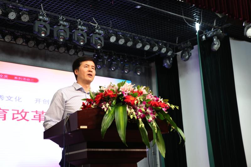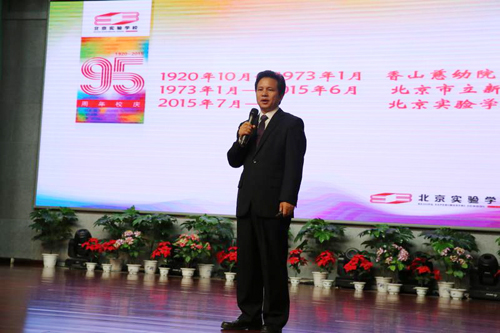 北京实验学校治学之严谨、成果之丰韵,离不开上级部门和各级领导的关怀和支持。曾校长讲话后,中共北京市人民政府教育督导室主任唐立军和中国教科院副院长曾天山分别为此次活动致辞。唐主任的致辞高屋建瓴,细数了北实近年来取得的优秀成果和巨大改革举措,表示了对北京实验学校教育工作的充分肯定,表达了对这所学校的未来给予的深切厚望。讲话最后,在这个中秋佳节刚过,十一国庆将至的日子,唐主任对北实的全体师生予以了亲切的叮咛和浓浓祝福。曾副院长也对学校予以高度评价,他平易近人,语言诙谐幽默,将学校评价为一所高“颜值”的学校:十五年一体化的教育改革新探索,优秀的教育教学理念,“入口”低、“出口”高的超强教育加工能力等均为这所学校高“颜值”的表现。