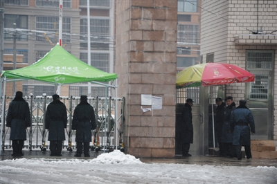 11月6日,北京科技经营管理学院大门口,多名保安严查出入者的身份。