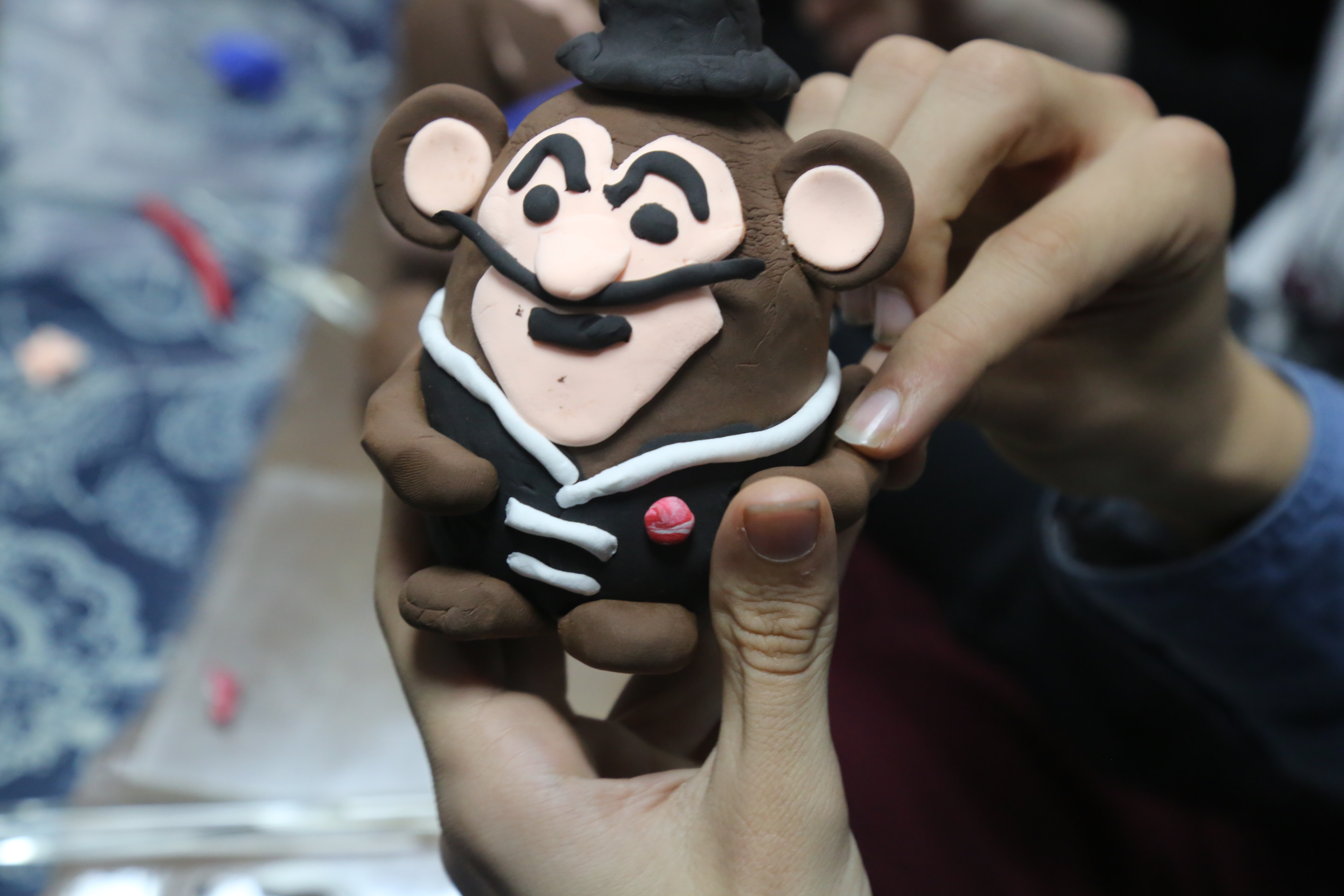 面塑是一门古老的民间艺术,被誉为“立体的绘画,无声的戏剧”,走进丰台少年宫的京工坊,大家被丰富多彩的面塑作品所吸引。活动现场,老师首先告诉大家本次活动要完成的作品是一只可爱的小猴子,可以自由发挥,大胆想象,并仔细介绍了需要哪些材料,现场教大家如何制作。