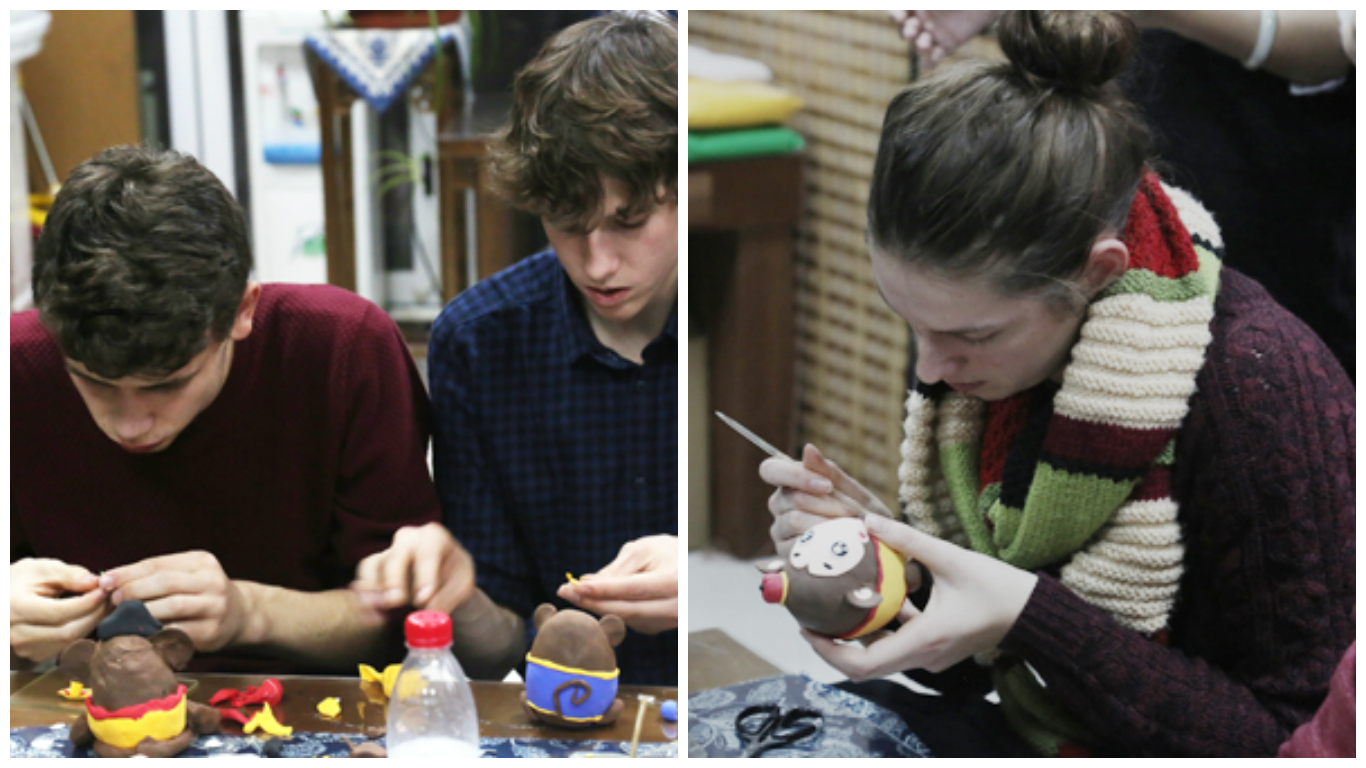 面塑制作实际操作起来并没有想象中的那么容易,在“捏、搓、揉、掀”之间要把握好度,每一个动作都在挖掘手部动作的潜能,正所谓心灵手巧,考验大家的想象力以及创新能力。虽然有的学生手指不是很灵活,但一次又一次的重新揉搓,逐渐地掌握了基本动作和要领。同学们中有手法细腻的,也有大胆创意的,各有特色,各有创新。大家还使用一些简单工具和装饰将作品完善,给猴子穿上了个性的外衣,借柔软的面团、灵巧的双手,用小竹刀灵巧地点、切出鼻子耳朵等,整个过程都充满了无限的乐趣。同学们拿着自己的作品,脸上都洋溢着成功的喜悦,真切而又愉快地体验到了中国民间传统面塑艺术的魅力!