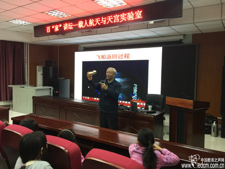 最后,焦教授为大家介绍了中国的载人航天事业,激发了同学们的民族自豪感,并对我国未来的航天事业进行了展望,共祝福我国的天宫早日建成!