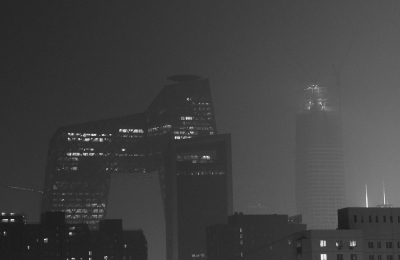 昨晚,笼罩在雾霾中的北京中央商务区。